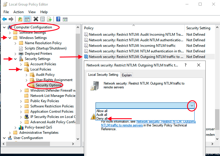 – Network security: Restrict NTLM: Outgoing NTLM traffic to remote servers