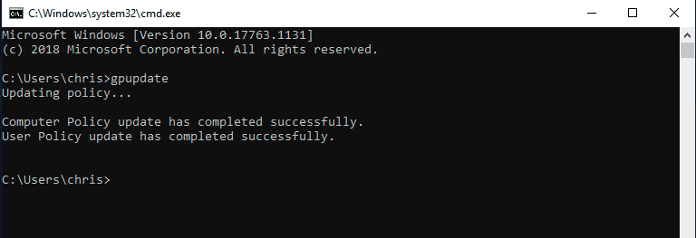 When the above steps are done. Update the group policy object for it to take effect immediately in order to avoid the default time of 90 minutes. See this link for more information, see the following article “all about GPO switches gpupdate and gpupdate-force“.