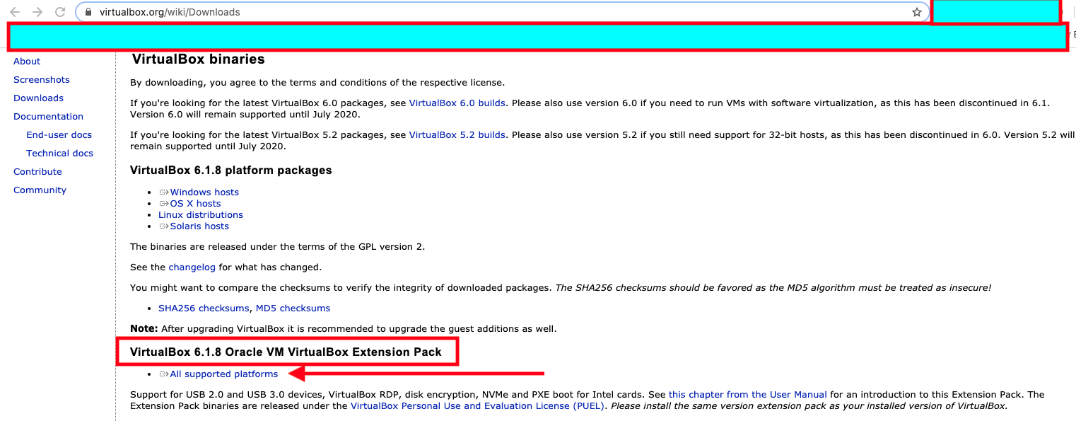 Navigate to the following link to download VirtualBox 6.1.8 Oracle VM VirtualBox Extension Pack. Click on the All supported platform as shown below.