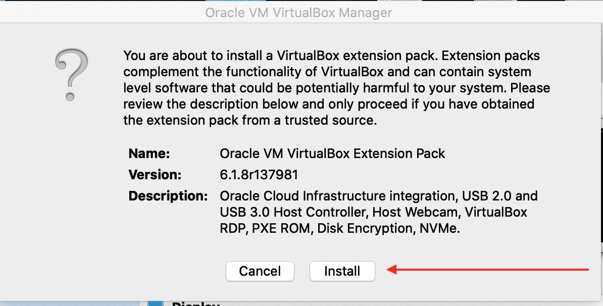 This will ensure the VM VirtualBox Extension Pack is downloaded to your system. In my case I am using macOS.