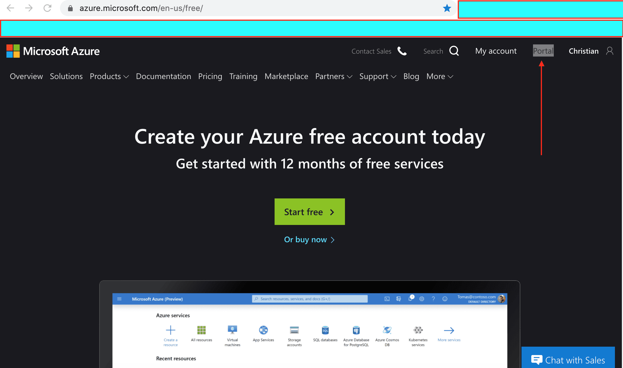 – Navigate to https://portal.azure.com/ or click on the Portal menu as shown below