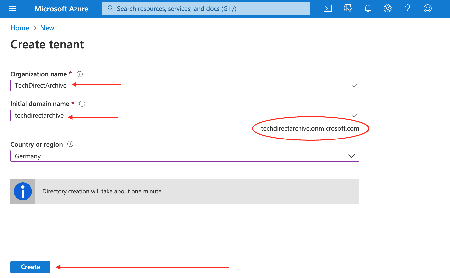 Create a new tenant for your organization: Create your new directory by following the steps in Create a new tenant for your organization.