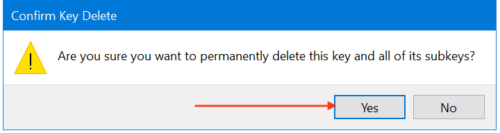 But in my case, I had to delete a Registry key. You will be prompted to confirm the deletion, simply select “YES” as shown below.