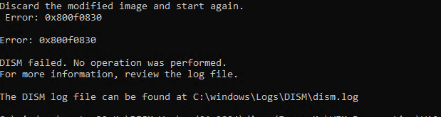 Error 0x800f0830: Discard the modified Image and start again, no operation was performed
