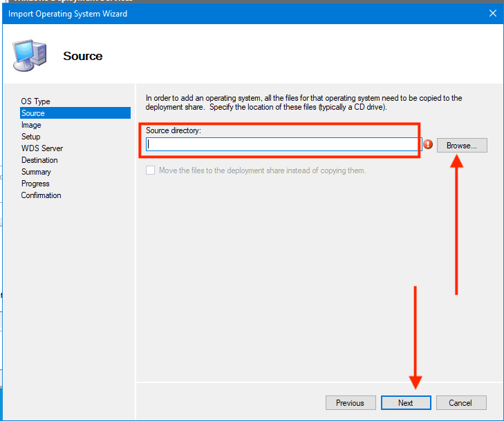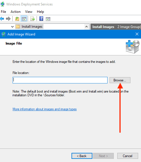 This will work you through to select the image location. Browse and select the install.wim file your deployment share.