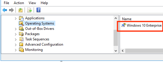 Note: In your task sequence, ensure that you point the “install operating system” to this new OS path to install, or else your installation will not work and you will get an error that the operating system is missing.