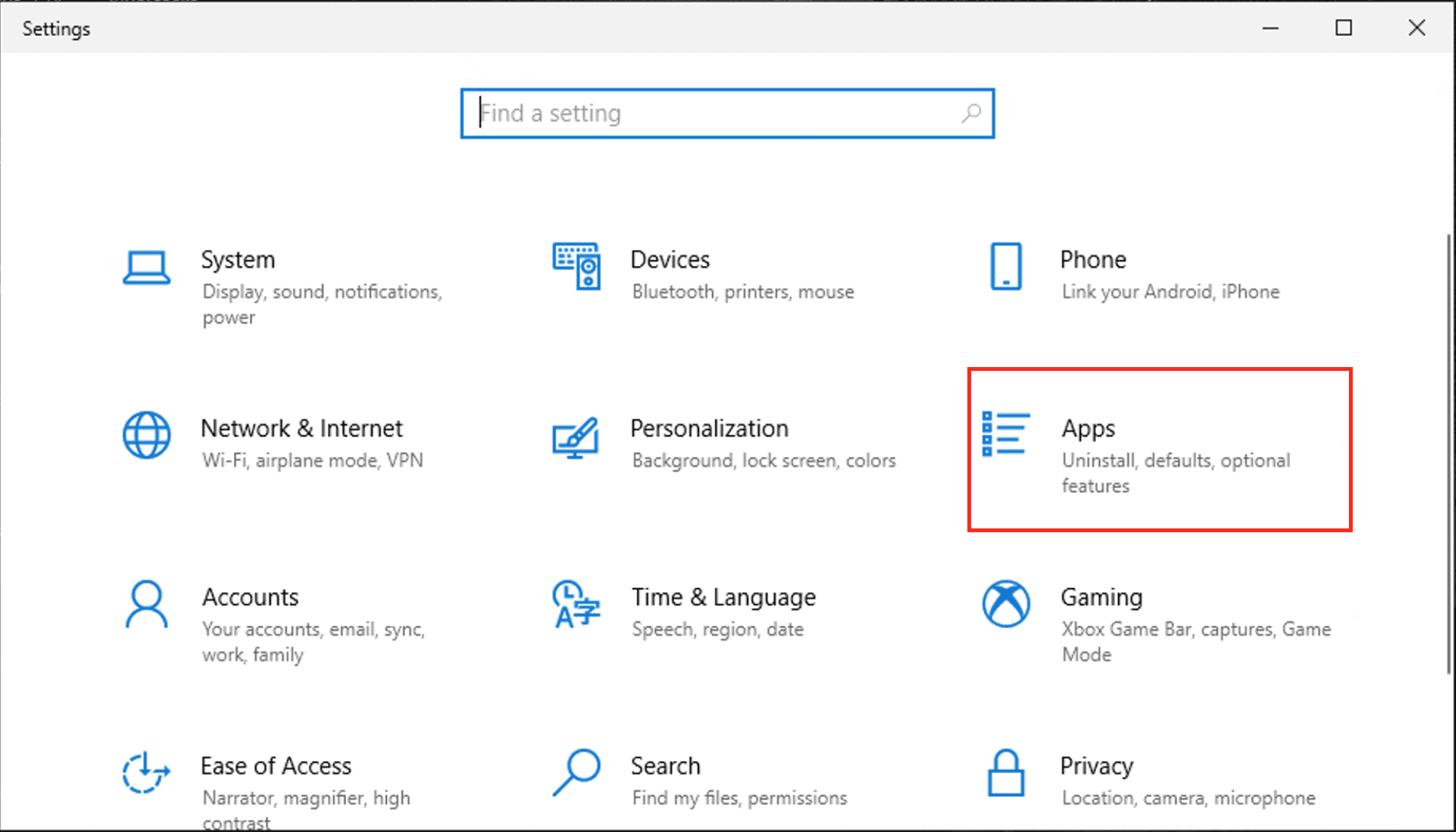 This will open up the Windows Settings, as shown below