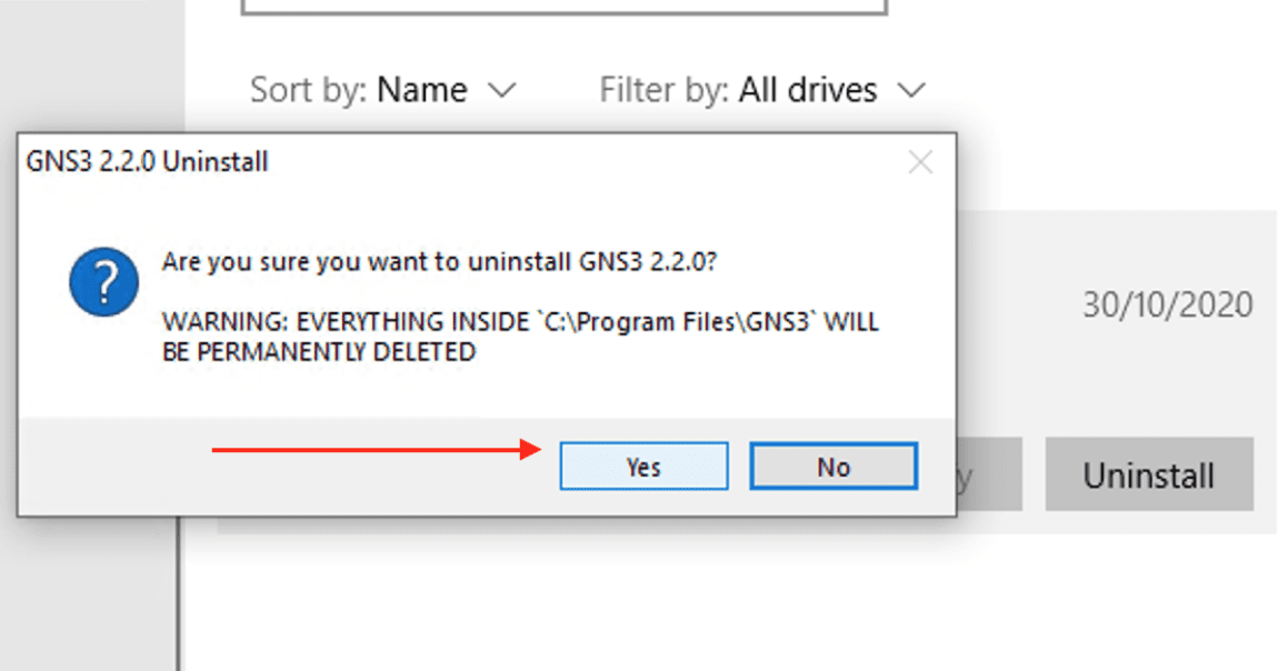 Graphical Network Simulator: How to uninstall GNS3 in Windows