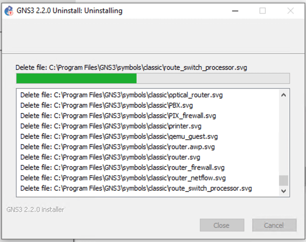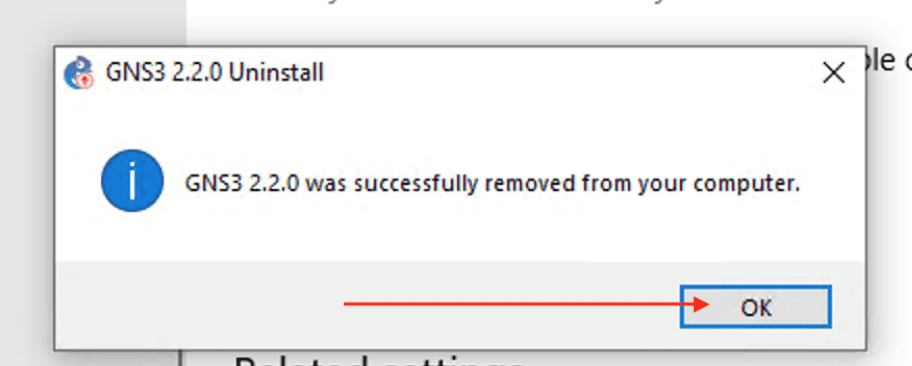 The following message below will be prompted if GNS 3 is successfully uninstalled.