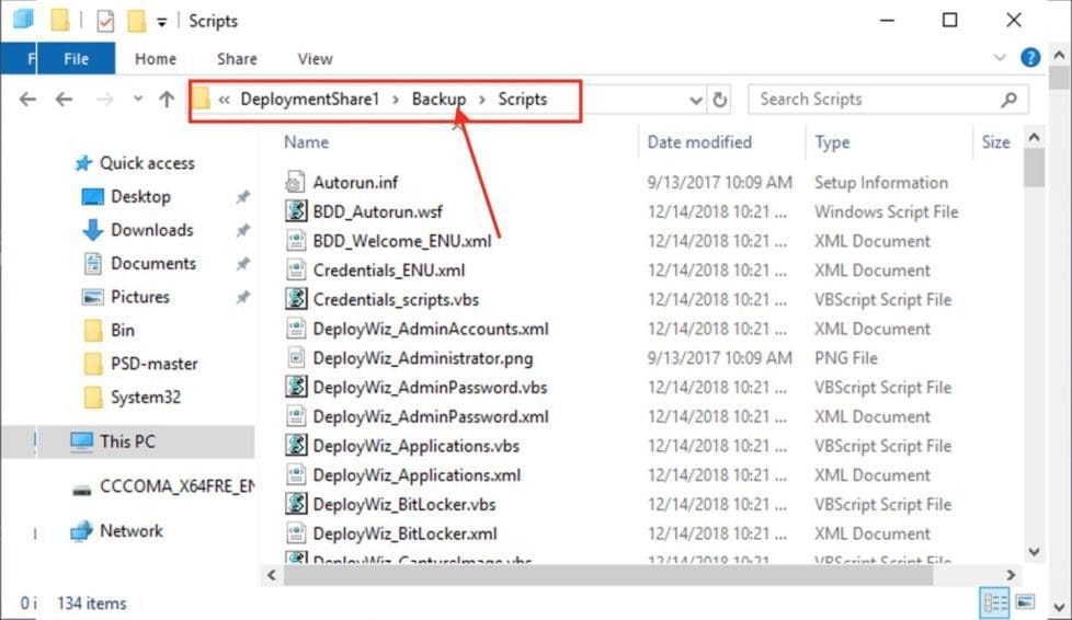 Note 2: This will ensure that existing MDT scripts are moved to a backup folder as shown below in the specified deployment share. Please see this link for further steps.