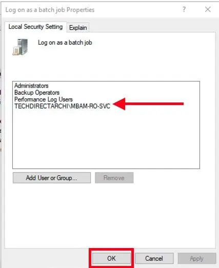 I needed to grant an MBAM read only server "MBAM-RO-SVC" logon as a batch job permission and because of this, I decided to create this article for you to benefit from it. This is an MBAM Read-only service account which will have access to the reports area of the Administration and Monitoring Website.