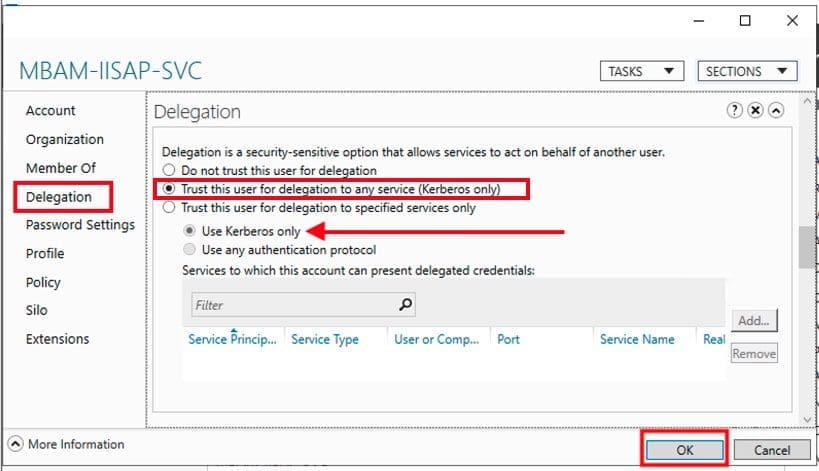 Furthermore, If you wish to configure constrained delegation when you are using MBAM 2.5 only, please see this link.