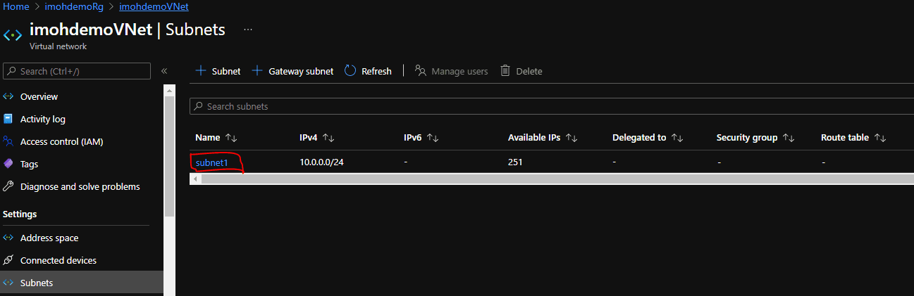 You can see that the Virtual Network we just created is right there in the resource group named “imohdemoRG” in the “EastUS” location