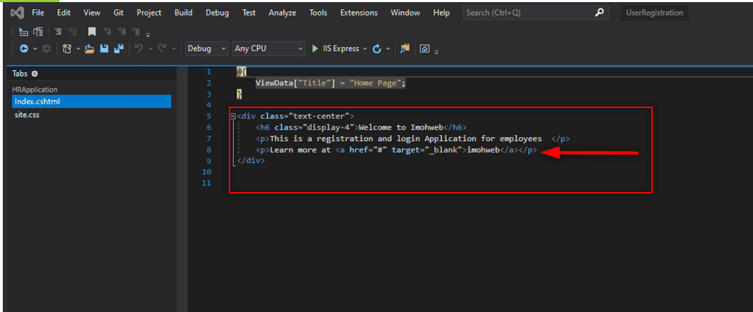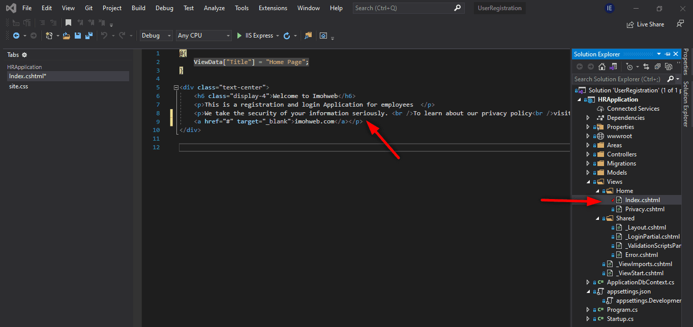 Furthermore, The screenshot above shows the modified code to my web app. From the screenshot, I modified the index.cshtml file under the home folder.