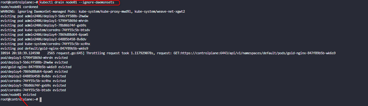 kubectl drain controlplane --ignore-daemonsets