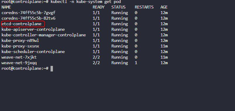 Save the file and run kubectl get pod in the control plane