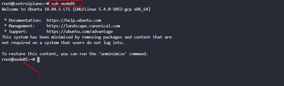 ssh into the required node which is node01 by writing the command below