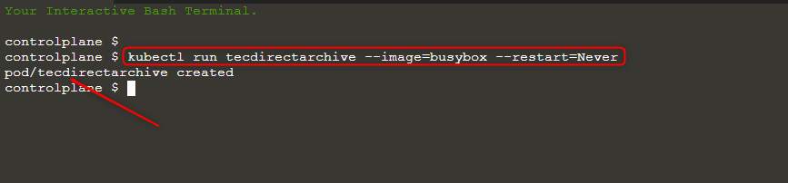 kubectl run techdirectarchive --image=busybox --restart=Never