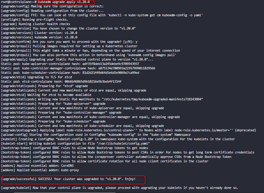 kubeadm upgrade apply v1.20.0