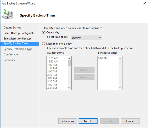 7. Specify the Backup time that is appropriate for your environment.