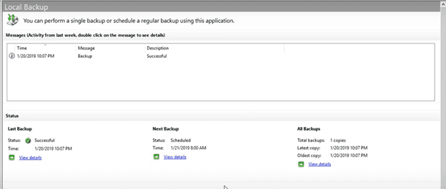 11. After the backup is successful you will get the overview page below