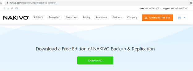 Download a free edition of NAKIVO Backup & Replication from the following link.