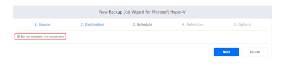 16. If you decide to run the backup job manually, you will select the Do not schedule, run on demand checkbox on the Schedule page.