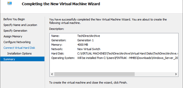 8. At the summary page you get to see the details of the VM you are configuring. Now click finish.