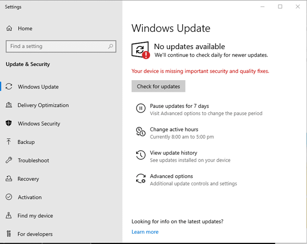 Using Windows Update to Fix Windows Search Issue