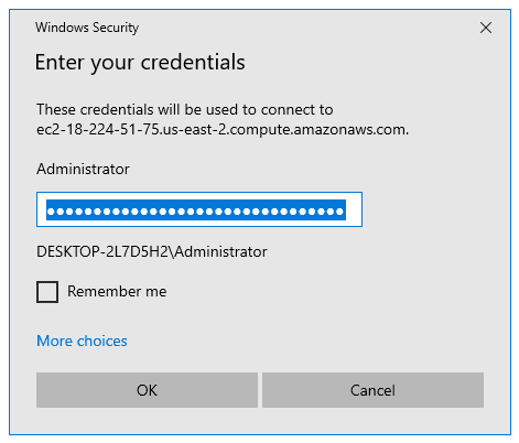 You will now be able to connect via RDP to the instance with username as Administrator and the password that was decrypted.