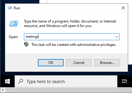 Confirm the IIS has been properly installed by typing inetmgr in the run