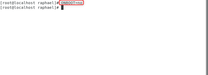 Addressing the challenge, we utilized ONBOOT=no and dhclient commands.