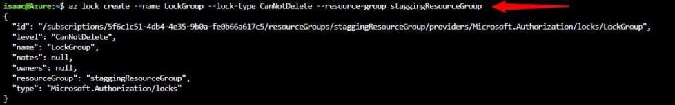 az lock create --name LockGroup --lock-type CanNotDelete --resource-group staggingResourceGroup