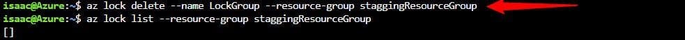 az lock delete --name LockGroup --resource-group staggingResourceGroup