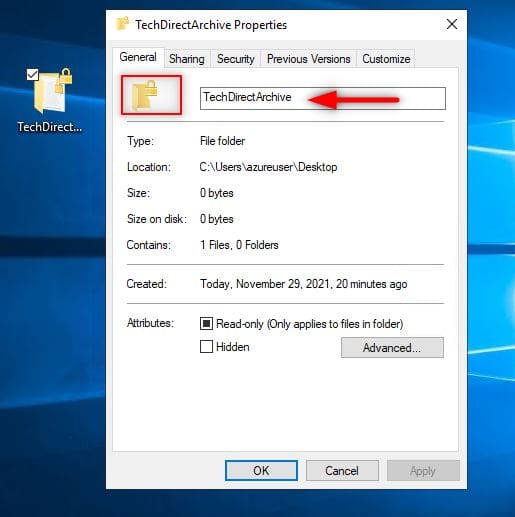 First, take a look at our folder. You will notice a yellow padlock icon