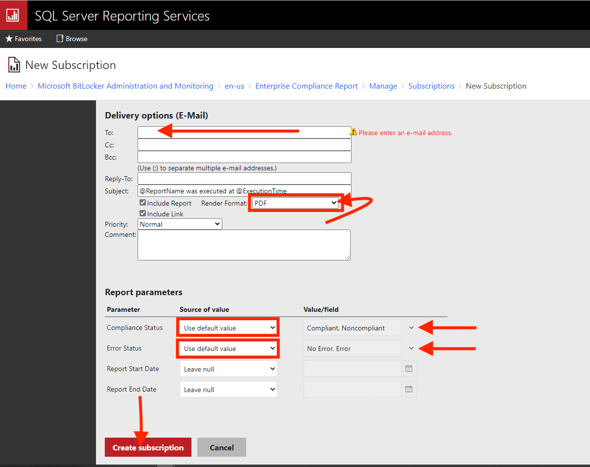 In this guide, you will learn how to set up Email notifications for MBAM Enterprise and Compliance and Recovery Audit reports. Here is a guide on how to query MBAM to display the report for BitLocker Recovery for a specified period of time. Here is how to fix you are not allowed to view this folder on SSRS: MBAM reports cannot be accessed because it could not load folder contents. SQL Server Reporting Services (SSRS) provides a set of on-premises tools and services that create, deploy, and manage mobile and paginated reports (Automatic E-mail notification).