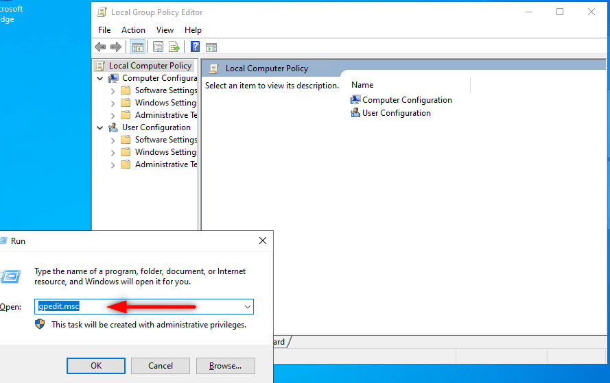 1: Press the Windows + R to open the Run dialogue box and type the gpedit.exe command. Then press Enter