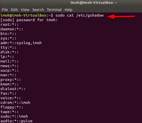 The list of users can be found in the /etc/passwd or awk -F':' '{print $1}' /etc/passwd while /etc/gshadow is used to store users’ passwords.
