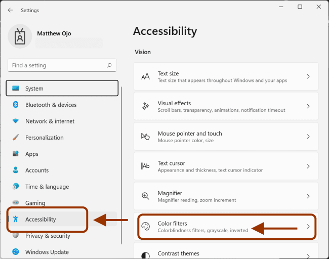How to Enable or Disable Color Filters in Windows 11
