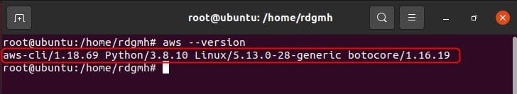 To verify that we now have awscli installed on our machine, we can run the command shown below :