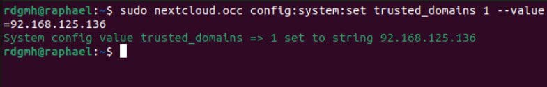 sudo nextcloud.occ config:system:set trusted_domains 1 --value=92.168.125.136