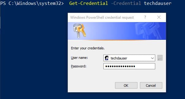 Get-Credential -Credential <Username>