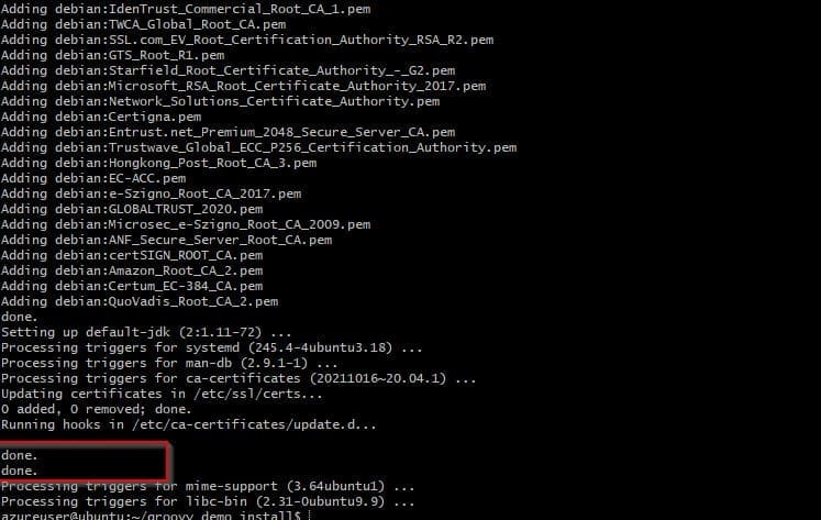 These commands produce no output, but the /groovy_demo_install the directory is where Java is installed.