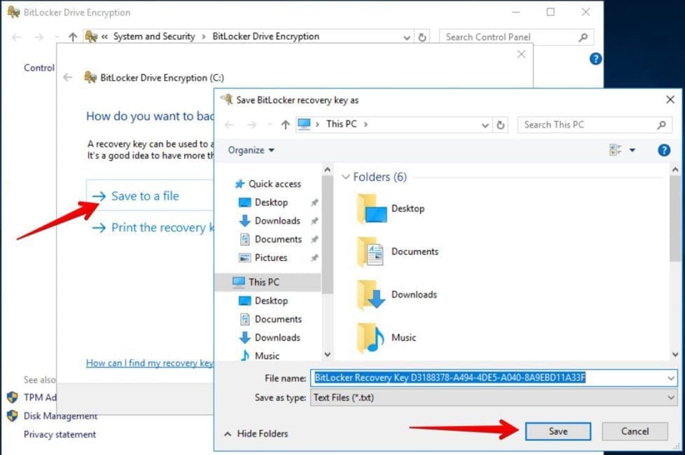8. Save the key to a file or print and change the location of the file from your system. Keep in a safe place.