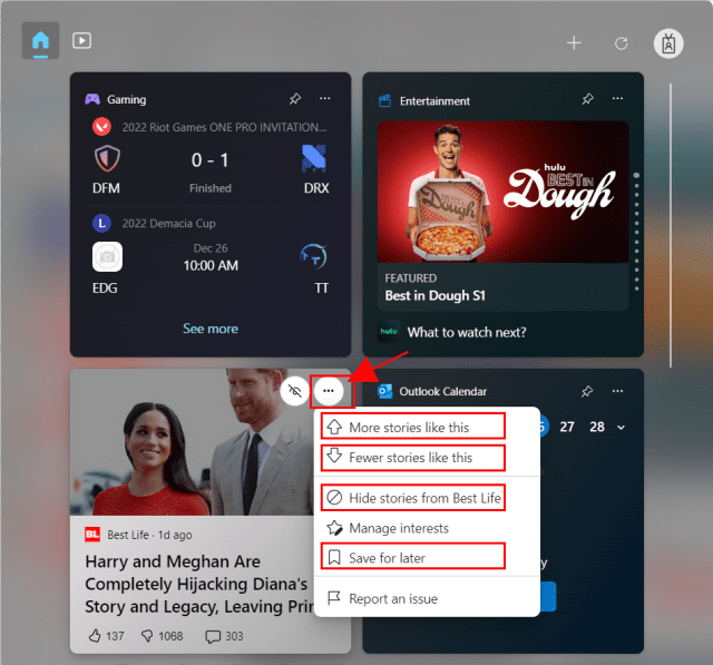 The news stream shows you stories that are related to what you like. But if you don’t use Microsoft Edge, have a Microsoft account, and use Microsoft Bing, you may need to set your preferences to see content that fits your tastes.