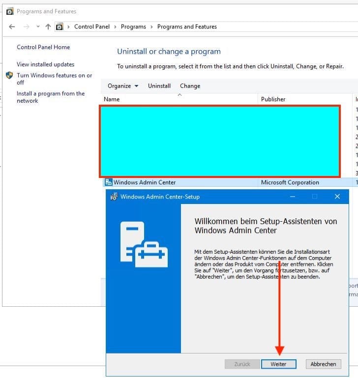 Launch the Windows Control Panel and navigate to Programs and Features as shown below. Right-click on WAC and select change or click on Windows Admin Center and Click on the Change menu above.