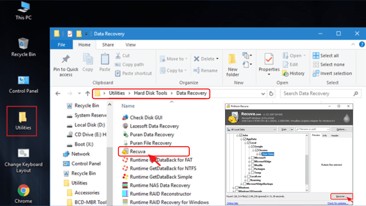 Double click on Recuva application in the utilities folder to open up the Recuva recovery tool.